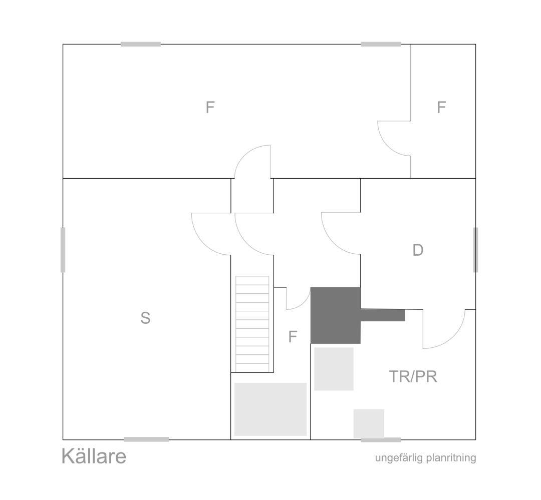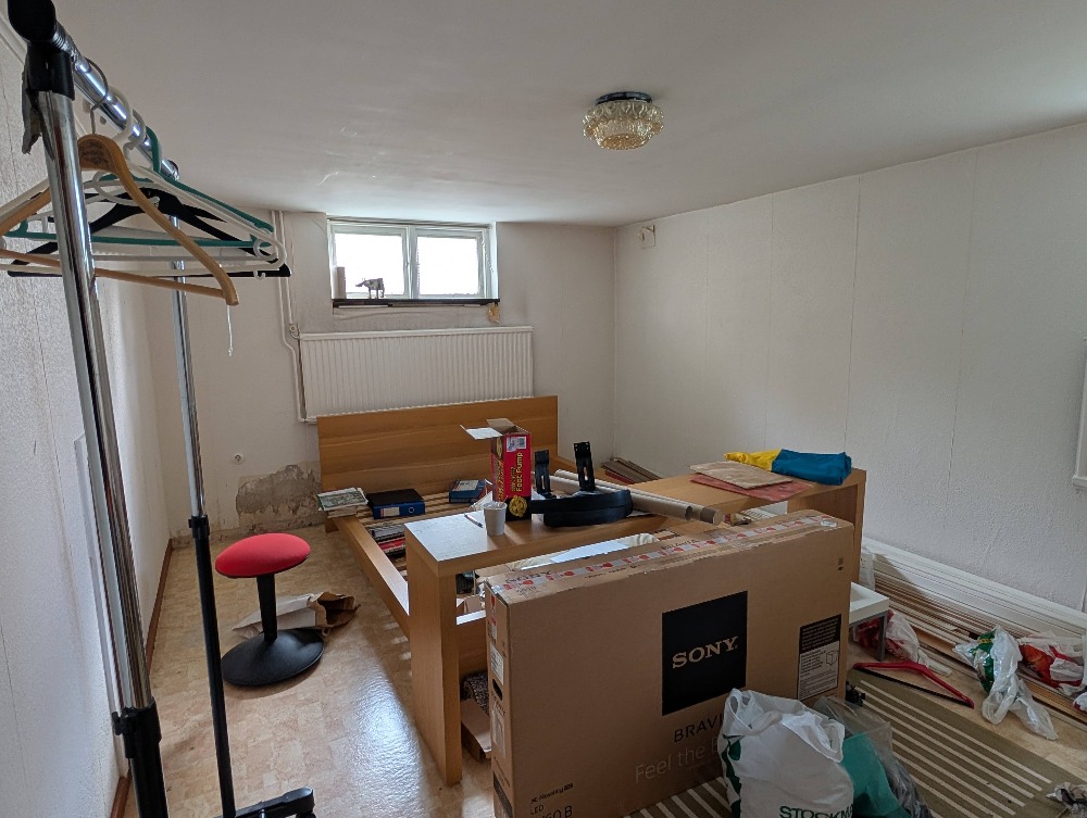 Källarens sovrum har funnits redan under de tidigare ägarnas tid. Under 18 år har jag inte märkt någon fukt i väggarna. Information om golvisoleringen eller dess skick saknas.
