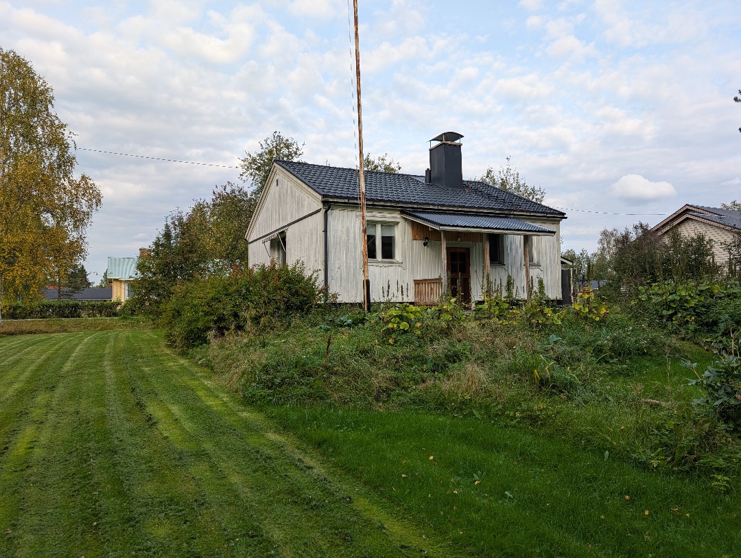 Ett smått och charmigt hus (Juoksengi 10:41) i Juoksengi. Huset ligger på en lugn hörntomt i ett trevligt grannskap. På tomten finns även ett litet garage med ett separat förrådsrum.