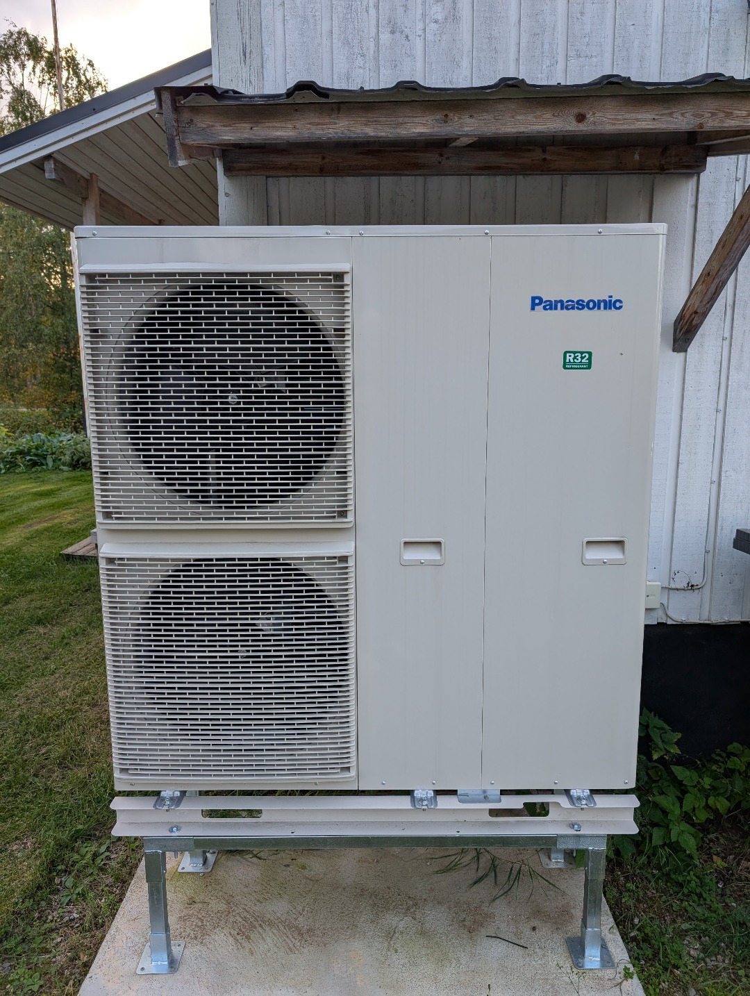 På våren 2024 gick den gamla Sanyo luft-vatten-värmepumpen sönder och ersättande enhet installerades först sent på hösten. Under den tiden värmdes huset med direktverkande el.